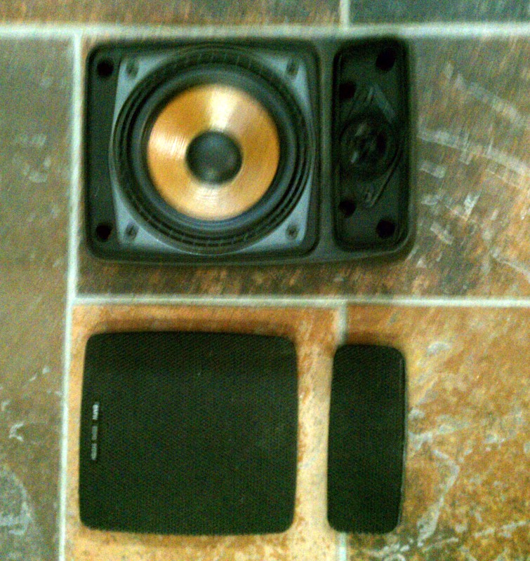The premium ones are mounted in a box that sticks up above the parcel shelf, and consist of a main speaker (that looks similar to the plain-style speaker) and a smaller “tweeter” speaker unit. Each of the two speakers has a removable black mesh cover. The larger of the two mesh covers has “BMW Sound System” integrated on it with white letters. Even though each side (passenger side and driver side) has two speakers (integrated into one box), there is just one pair of connectors to the car’s wiring system, for each box.